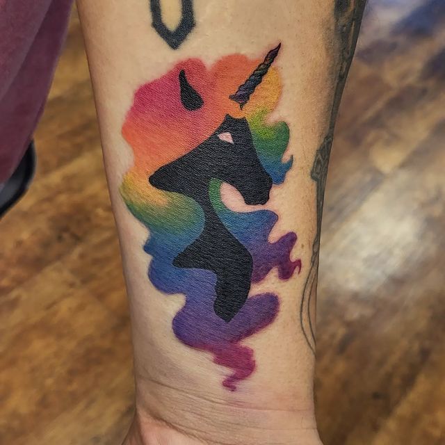 20. Rainbow-Mane Unicorn Silhouette Tattoo