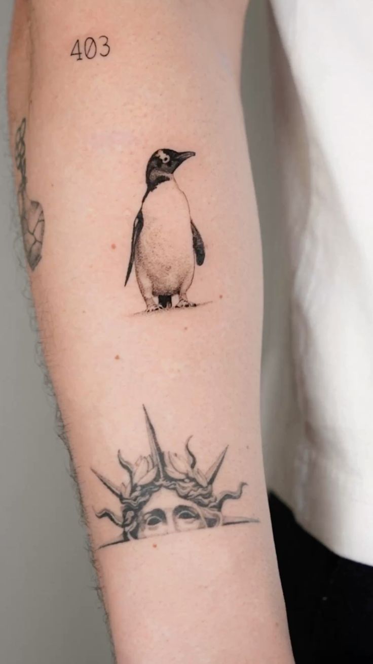 This is a great who-is-it-for tattoo for someone who wants a smaller piece that still feels thoughtful and unique. It suits minimalist style, neat placements, and people who prefer clean black-and-grey work over heavy contrast. For women, ideas for female collections, or anyone who likes subtle animal designs, it’s a smart choice. It also has nice Matching potential if you’re considering a pair tattoo with a partner, sibling, or close friend. A penguin is symbolic enough to matter, but simple enough that it won’t feel overly sentimental if you prefer your tattoos with a bit more restraint.