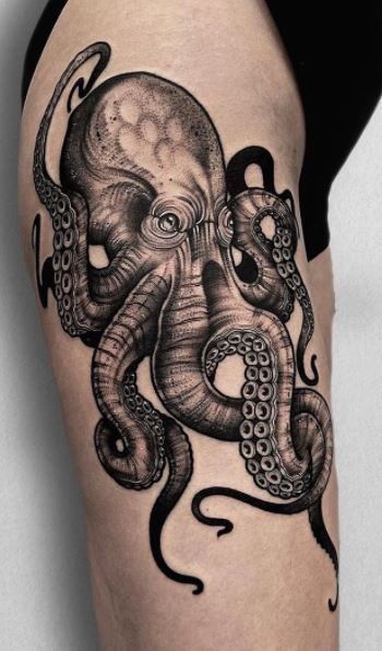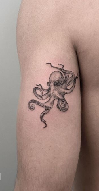 If a big statement piece feels like too much, this is a beautiful entry point. It’s especially good for people who want simple designs with meaning and a soft black-and-grey finish. The upper arm placement works well because the tentacles naturally follow the curve of the body. Compared with a full-thigh or Sleeve octopus, this one is easier to live with and easier to style, but it still feels sophisticated. It’s a great pick for women or men who want the spirit of a Marine tattoo without the full intensity of something large and Dark.
