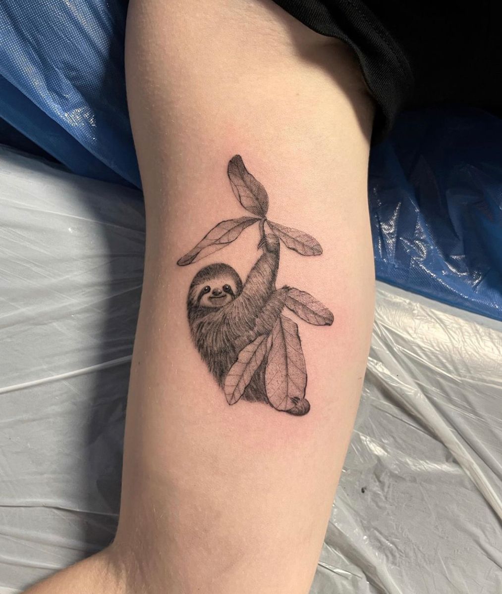 This sloth tattoo feels like a deep exhale. It’s calm, sweet, and completely unbothered by the chaos of the world, which honestly makes it feel weirdly aspirational. There’s a softness to it that makes the whole piece instantly comforting. Instead of dramatic symbolism, it leans into peace, patience, and the art of moving at your own pace. Sometimes that’s exactly the kind of meaningful tattoo people want—something that reminds them not to rush, not to panic, and not to let everything feel so urgent. And because it’s a sloth, it does all that without feeling heavy.