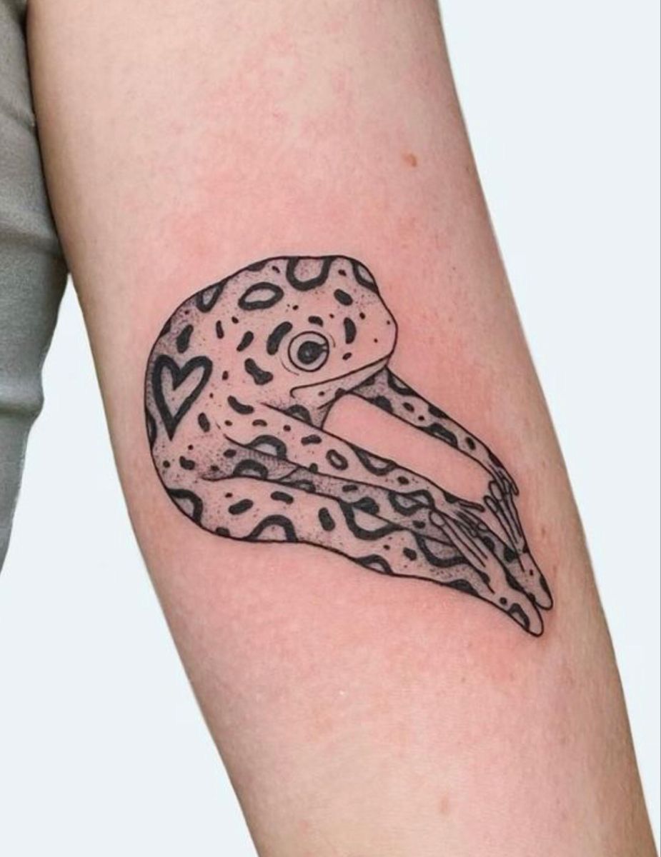 Because the shape is so contained, this one is incredibly easy to place on the forearm, calf, or upper arm. It’s perfect for anyone who wants Cute designs with clean lines and a readable silhouette. Compared with larger amphibian or reptile tattoos, this feels softer and more approachable, which makes it great for first-timers too. If your style leans casual, artsy, or slightly whimsical, it will fit right in. It’s also a charming pick for women and for men who want something unusual but not overly intense. Small doesn’t mean forgettable, and this proves it beautifully.