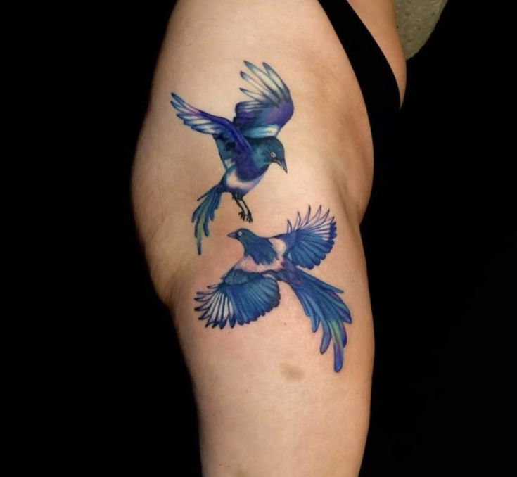 These blue birds feel like freedom in motion. The wings are open, the bodies are angled beautifully, and the whole design has a sense of lift that makes it feel hopeful without being cheesy. The layered blues give the birds depth and softness, while the darker outlines keep them grounded. It is a lovely choice for anyone who wants ink that feels emotional, graceful, and full of movement.