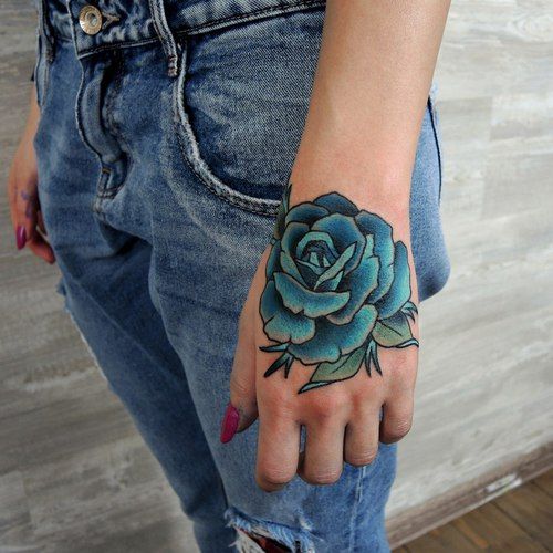A hand rose is perfect for someone who wants their ink to be part of their daily look, not tucked away for special occasions. Compared with a small wrist flower, this design has much more attitude and visibility. It can look gorgeous with denim, rings, glossy nails, or a sharp black outfit. Because hand tattoos can fade unevenly, choose an artist who understands placement and saturation, especially if you want the blue to stay rich after it has fully healed.