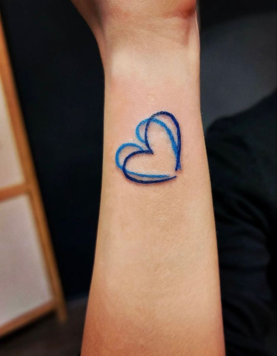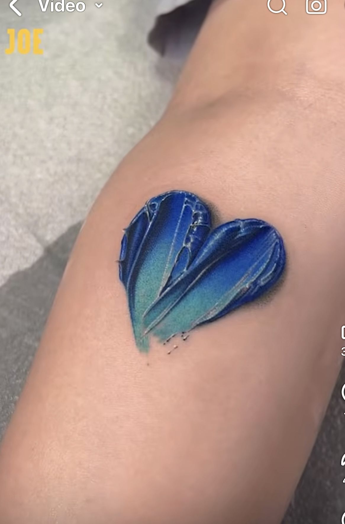This little heart has such a cool, artsy attitude. It does not feel overly romantic or sugary; it feels like someone swiped two strokes of blue paint across the skin and accidentally made something gorgeous. The mix of dark blue and light aqua gives it movement, almost like wet paint catching the light. It is simple, but not plain, and that is exactly why it works so well for anyone who wants a small tattoo with a lot of personality.