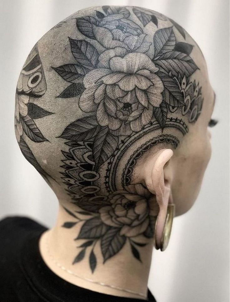Among head tattoo ideas, floral blackwork designs like this carry a graceful energy that appeals to both women and men. The detail truly shines when the scalp is shaved close, allowing every petal and line to remain crisp. If you love tattoos that feel elegant yet powerful, this kind of design offers a perfect balance between artistry and bold personal style.