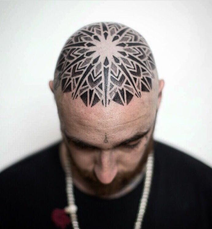 27. Geometric Top of Head Mandala Tattoo