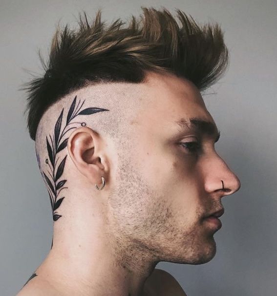 There’s something quietly rebellious about a shaved Side of the head paired with a delicate botanical tattoo. It feels like that moment when someone pushes their hair back and suddenly reveals a secret piece of art. The leafy design flows naturally along the curve of the scalp, creating a soft yet confident statement. It’s the kind of look that feels fresh and modern—subtle enough to be elegant, but bold enough to make people do a second take.