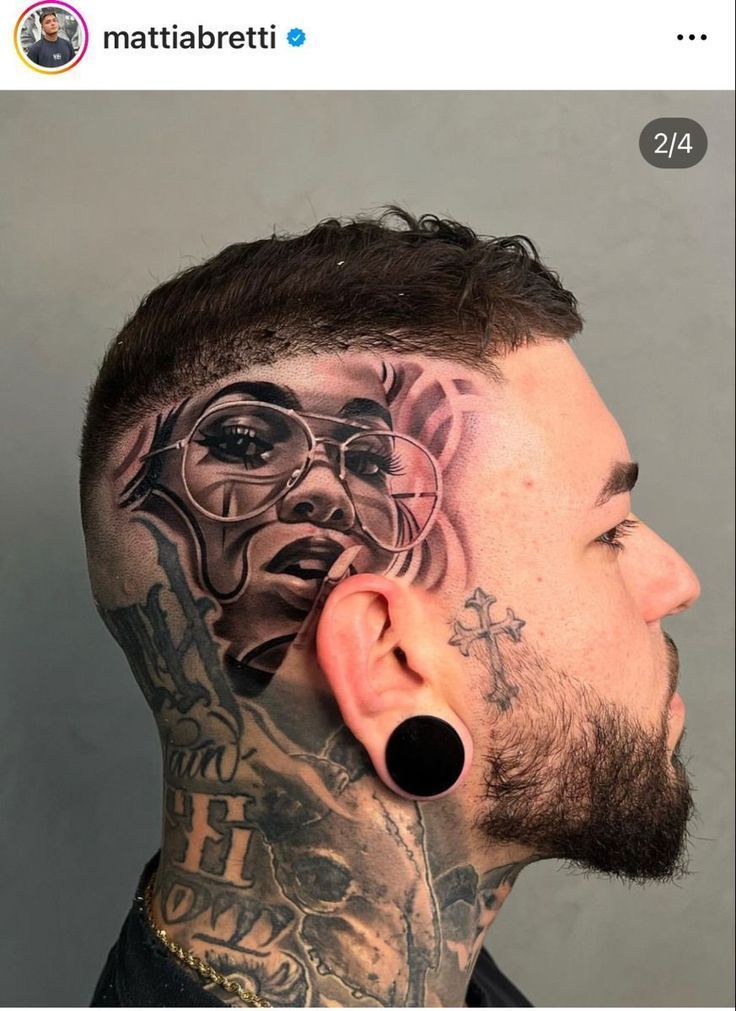 For men who appreciate high-level tattoo artistry, portrait designs represent some of the most impressive men’s ideas. The fade haircut helps frame the tattoo while keeping the look sharp. If you’re drawn to head tattoo ideas that showcase technical skill and storytelling, portrait tattoos are truly unforgettable.