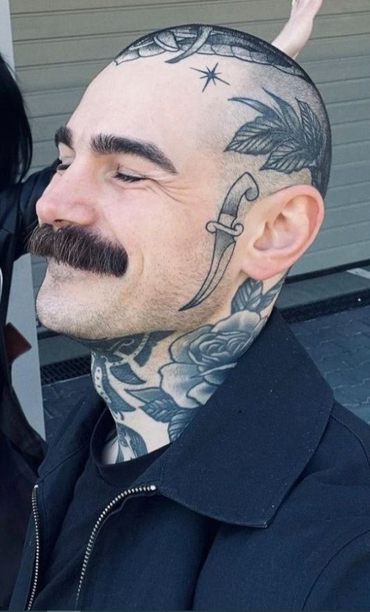 This style is especially popular for men who love traditional tattoo culture. The clean outlines and strong shapes hold up well on a shaved scalp, making maintenance fairly simple—just keep the hair short so the lines stay visible. Among head tattoo ideas, the old-school dagger remains one of the most iconic and recognizable designs.