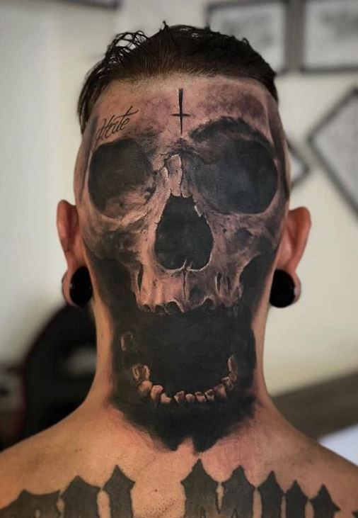 12. Dark Skull Full Head Tattoo