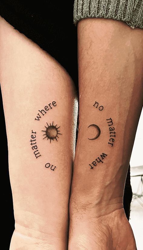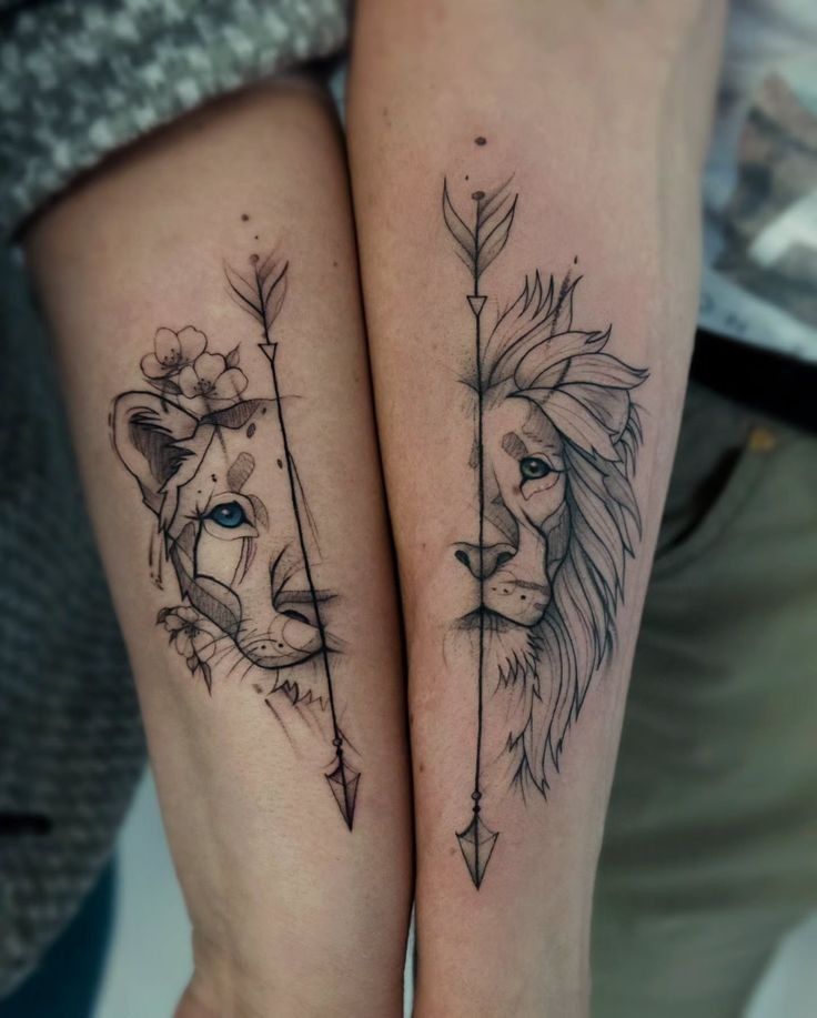 This kind of meaningful matching tattoo works beautifully for couples who see themselves as equals with different strengths. Fine line detailing keeps the look refined and timeless, while the vertical placement flatters forearms of any shape. It’s especially ideal for those wanting designs with unique love symbolism that still feel elegant enough to age gracefully.