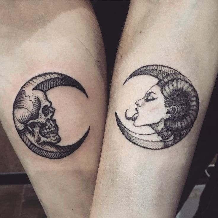 These designs, unique in tone, suit couples drawn to gothic or alternative aesthetics. The circular composition fits naturally on arms or calves, and the detailed shading ensures the artwork remains visually rich even years later.