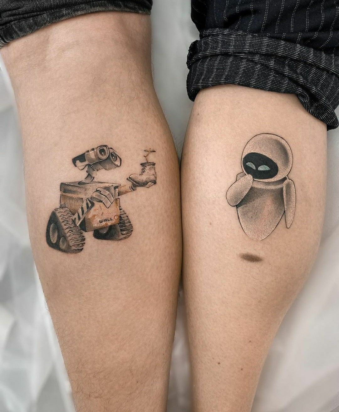 12. Minimal Wall-E and Eve Fine Line Tattoos