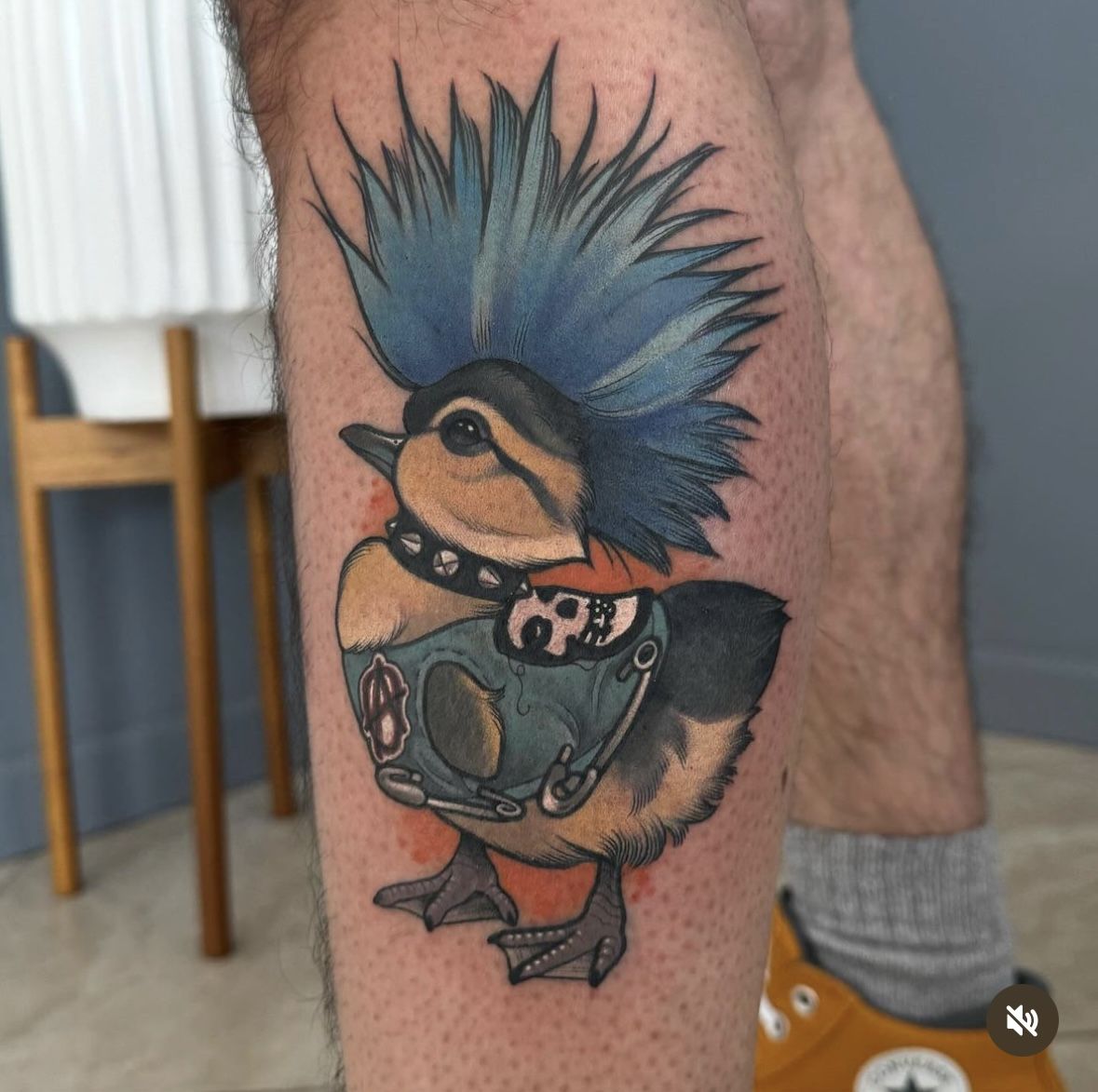 In 2025, we’re seeing more bold cartoon-inspired tattoos coming back strong, especially in saturated pinks and blacks. This one thrives on visible placements like the forearm or calf. If you’re craving duck tattoo ideas that feel rebellious and fun, this punchy design stands out in the best possible way.