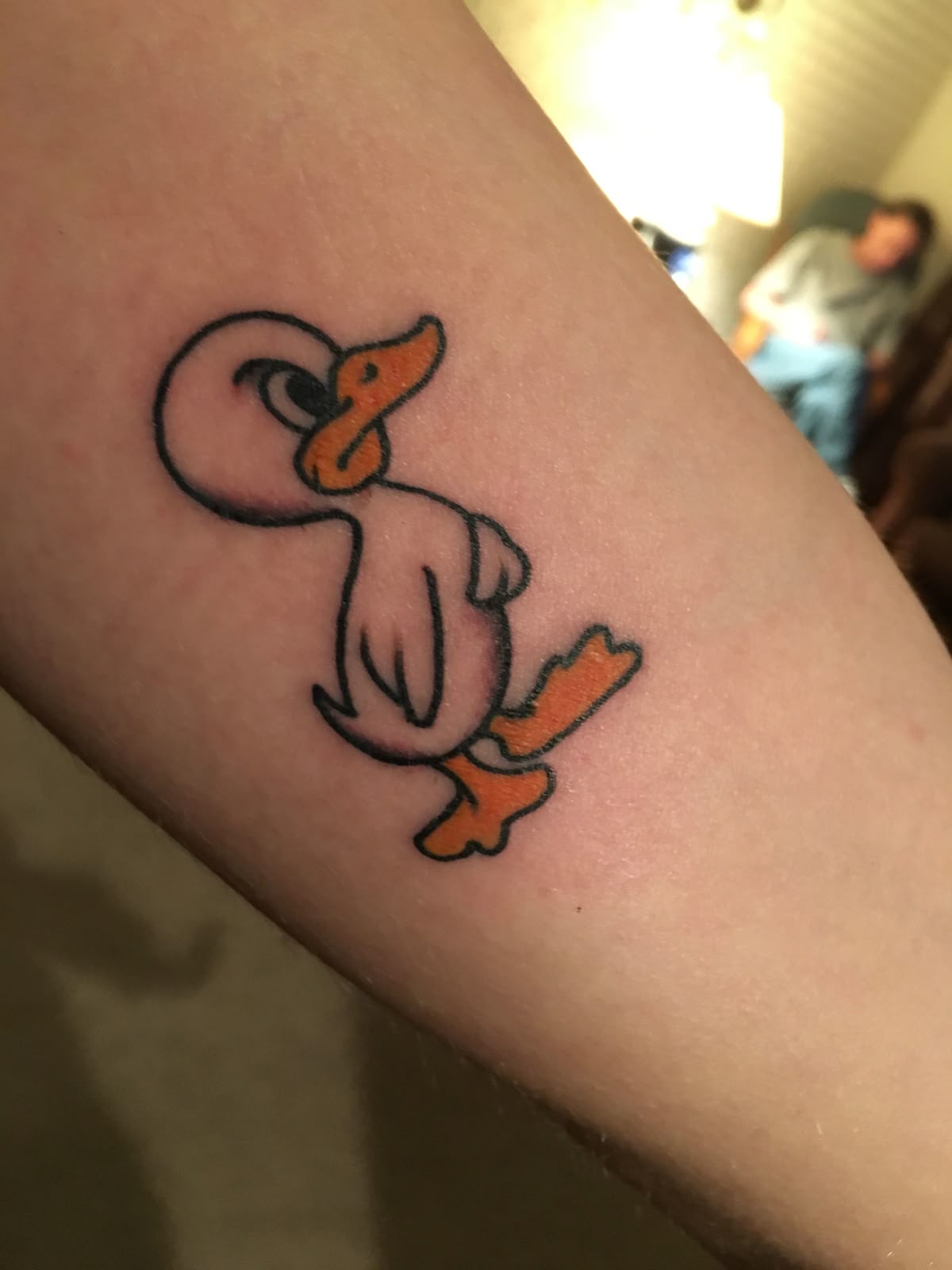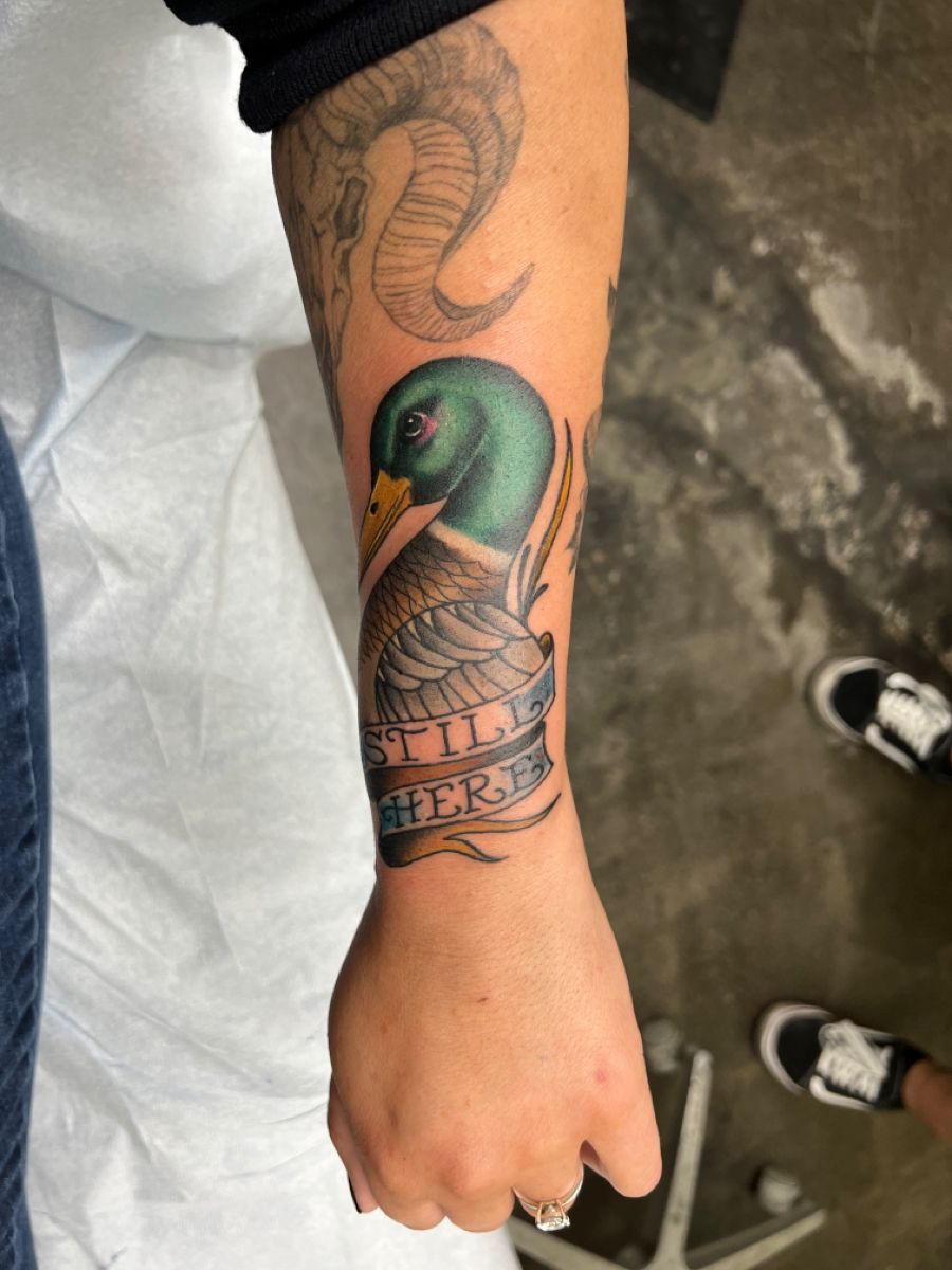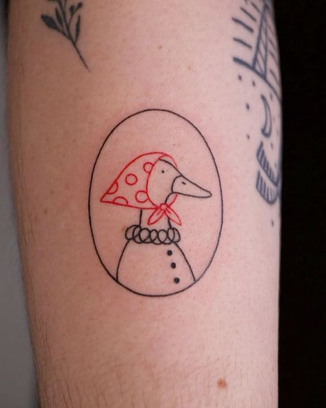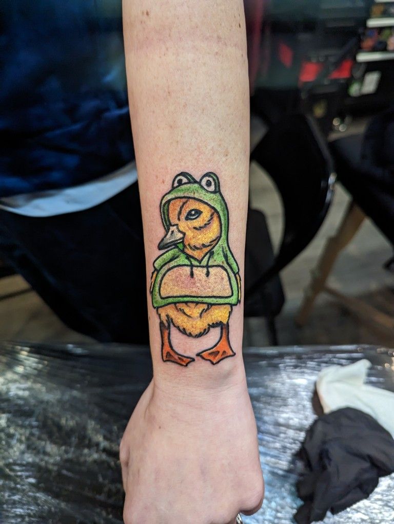 If you’re looking for duck tattoo ideas that feel modern and meme-inspired, this one fits right in with 2025 trends. The bold outlines help it age well, and it’s great for visible spots like the forearm. It’s one of those designs that instantly lightens the mood—and honestly, we all need a little more of that.