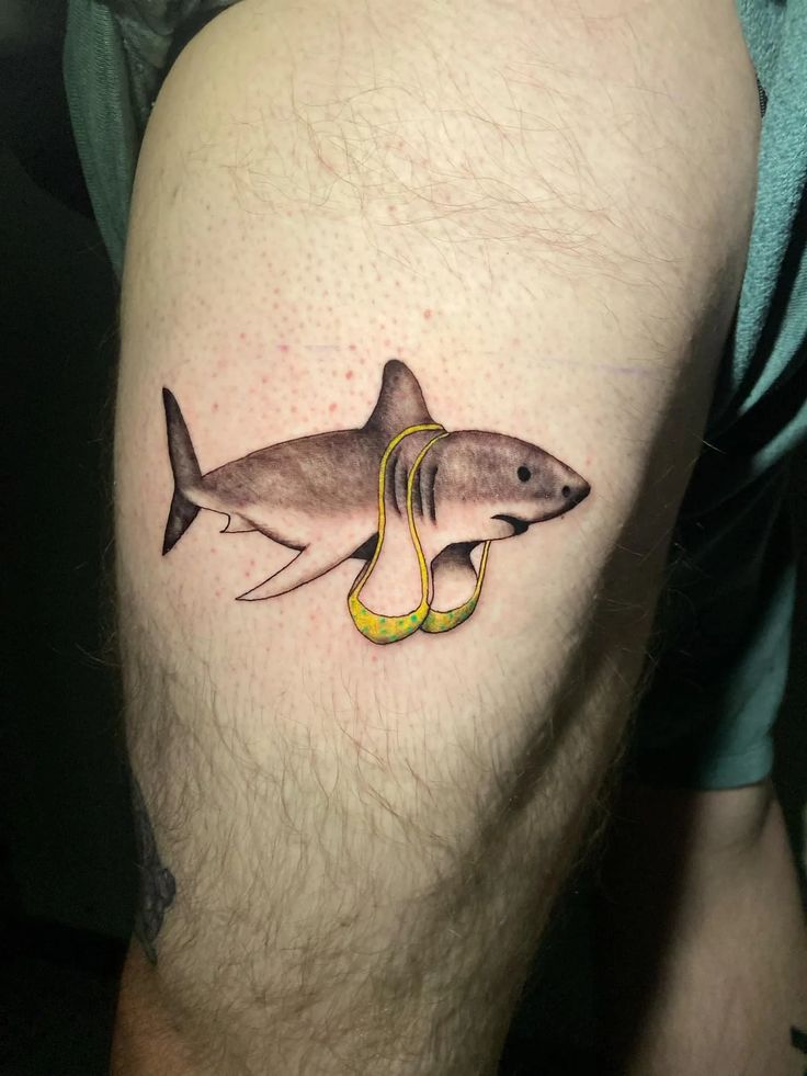 The design balances realism with absurdity, which gives it extra personality. Subtle shading creates a believable shark, while the colorful bra adds the comedic punchline. It’s one of those ideas unique enough to stand out without needing complicated detail. Both women and Men who enjoy slightly Weird ocean-themed tattoos will appreciate the playful creativity here.
