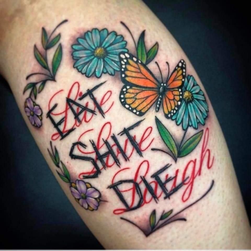 This tattoo is a perfect example of contrast done right. Delicate flowers, graceful butterflies, and soft colors frame a brutally honest phrase scribbled across the center. The clash between sweetness and attitude creates a kind of rebellious humor that feels strangely empowering. It’s edgy, bold, and definitely unforgettable.