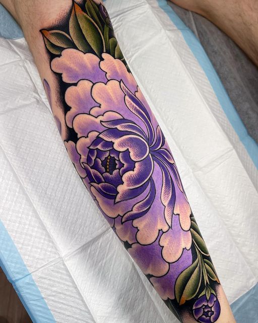There’s a luxurious, almost moody elegance to this tattoo. The purple tones feel rich and introspective, like a quiet confidence that runs deep. It’s dramatic without being harsh and romantic without being overly soft.
