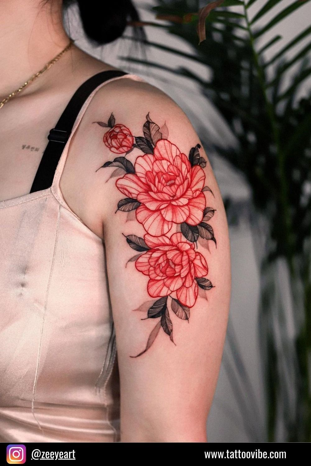7. Elegant Shoulder Bloom with Soft Red Petals