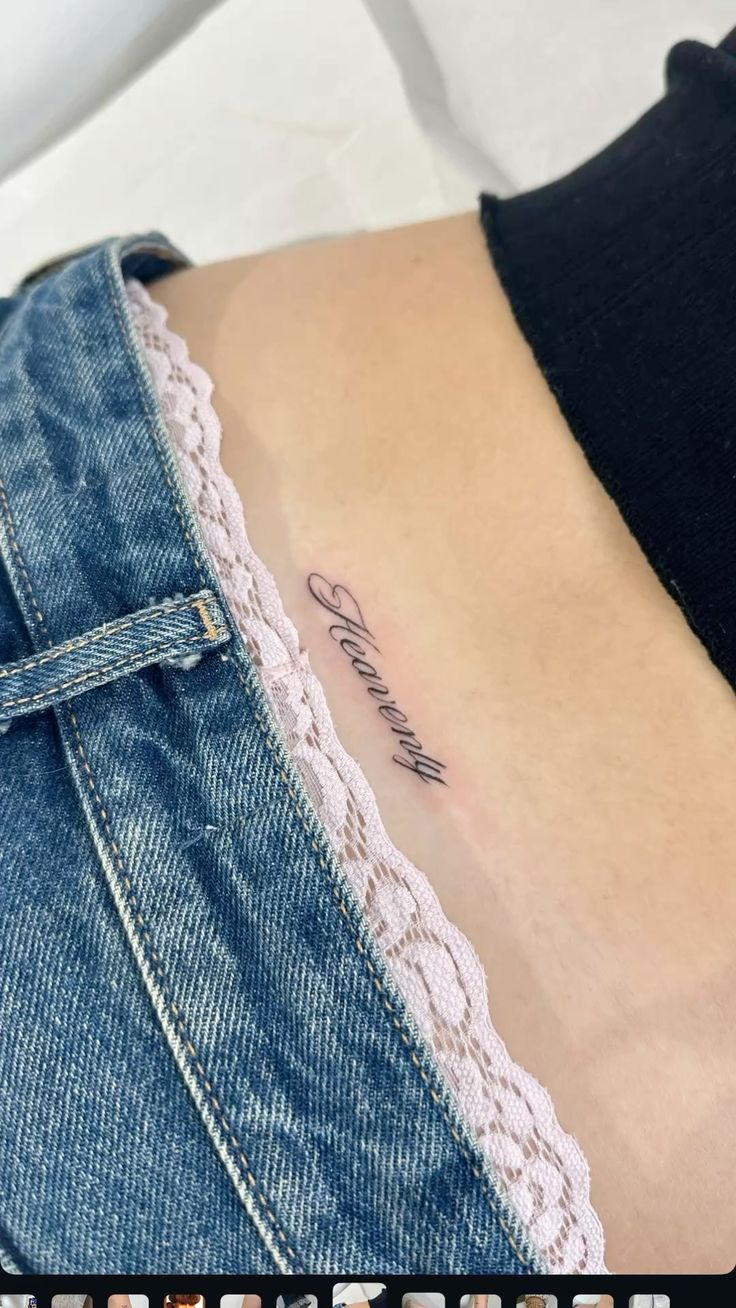 There’s something so personal about a script tattoo placed low on the Side like this. It feels intimate, almost like a note written just for you, which is probably why word tattoos never really go out of style. This one has a sleek, feminine quality that feels soft and stylish rather than overly sentimental. It’s subtle enough to keep its mystery, but meaningful enough to carry emotional weight. For women who want a lower back tattoo that says something without shouting, a beautifully chosen word can honestly be more powerful than the most elaborate design.