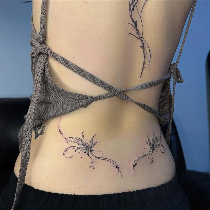The vibe here is soft, feminine, and effortlessly pretty, which makes it one of the easiest lower back tattoo ideas female readers can actually imagine wearing long-term. It’s perfect for women who like delicate jewelry, clean beauty, and small details that still feel expressive. A tiny Butterfly can stand alone beautifully, or it can become the starting point for future designs for women, like a cluster with Star elements, Flower accents, or even angelic Wings. Because it’s so small, placement matters a lot—keep it centered or slightly off to the Side for a balanced look. For women dainty in taste, this may be the sweetest option in the whole batch.