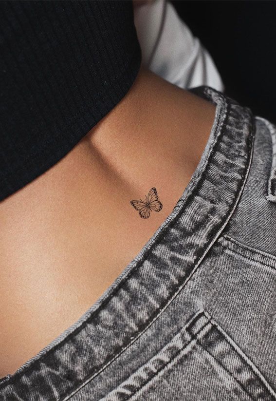 6. Tiny Butterfly Lower Back Tattoo