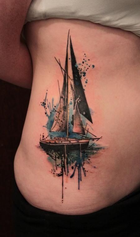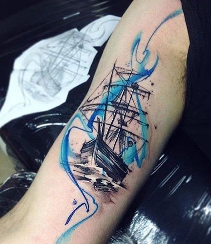 23. Abstract Watercolor Side Ship Tattoo