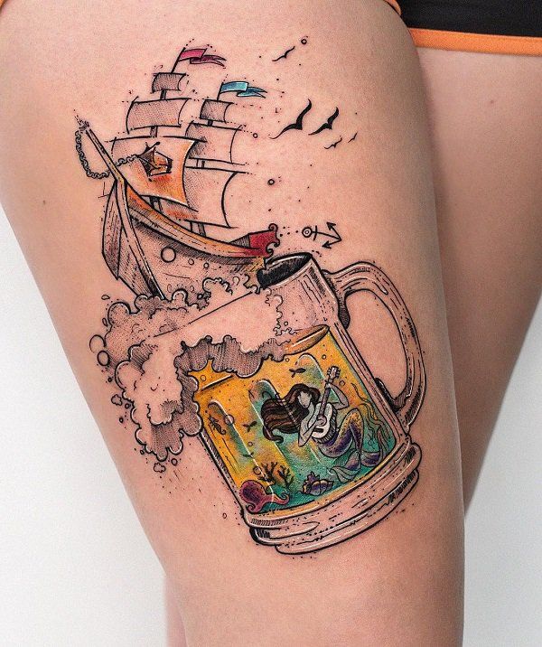6. Traditional Ship and Beer Mug Tattoo