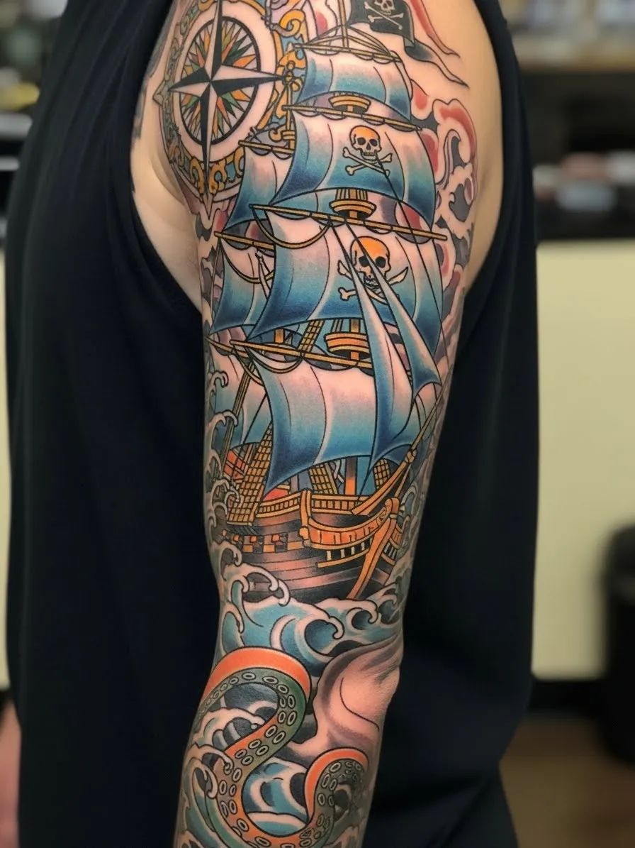 3. Traditional Pirate Ship Sleeve