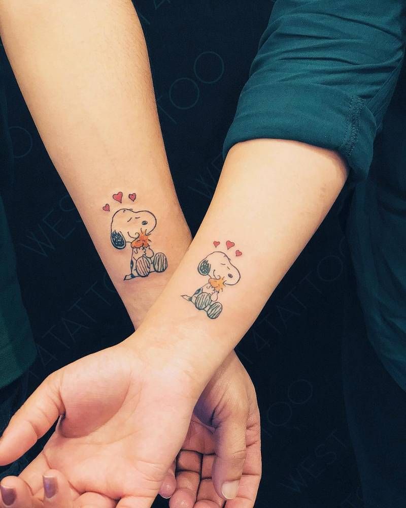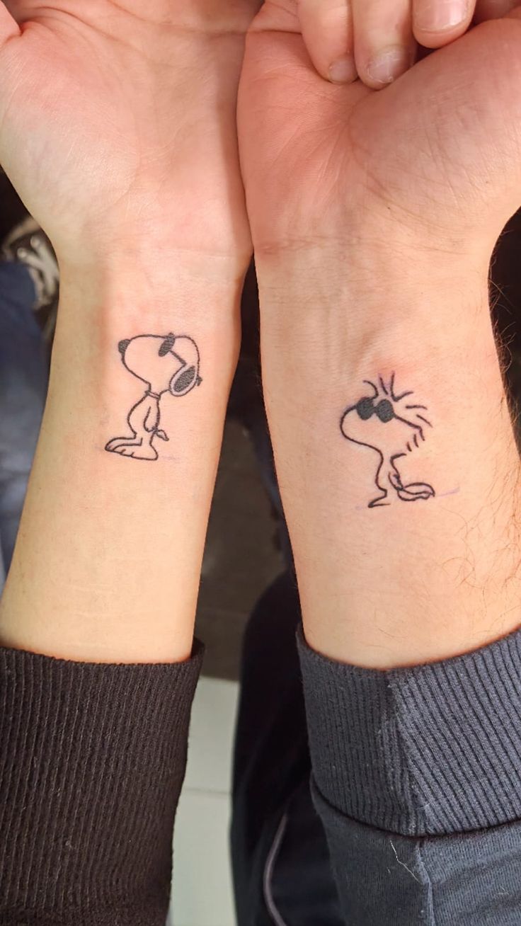 6. Matching Snoopy And Woodstock Wrist Tattoos