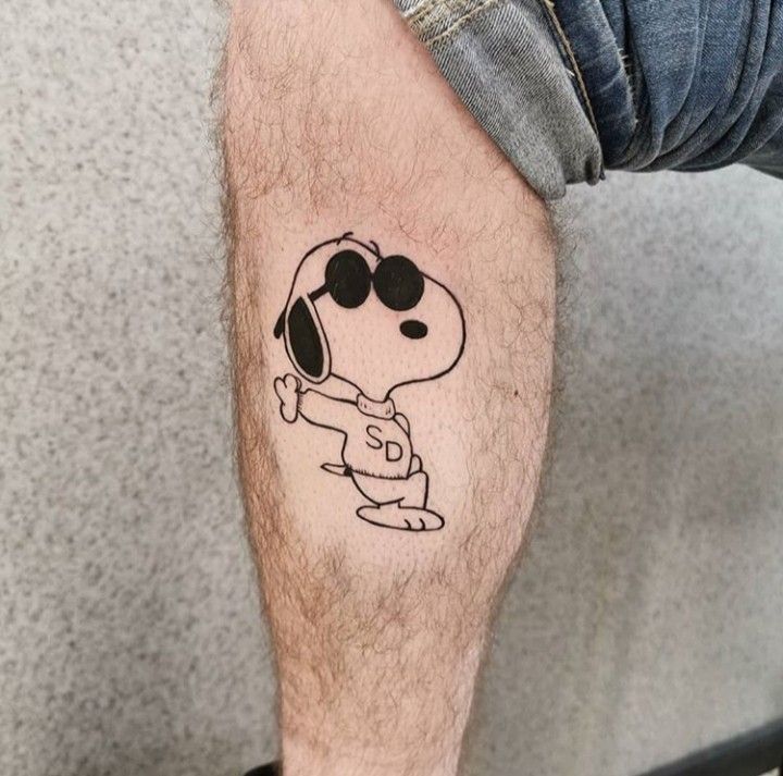 This Joe Cool tattoo shows Snoopy in his classic shades and sweater, frozen mid-strut like he’s walking onto campus in the 70s. It gives off confident, don’t-rush-me energy—the kind you grow into with age. If you’re sifting through Snoopy tattoo ideas for women who want something a little sassier, this one says, “I know who I am now, and I’m not apologizing for it.”