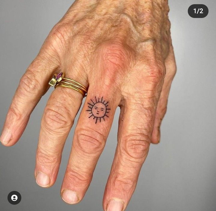 Finger Placement gives this tattoo a lot of personality, so it is perfect for someone who enjoys expressive little details. It can suit women of any age, including mature women who want something lighthearted and stylish, and it can also work for men who prefer symbolic rather than floral ink. Compared with stars or hearts, a tiny sun face feels more original and story-driven. Because finger tattoos need a bold, readable outline, this style works better than overly intricate Fine line pieces. It is a sweet reminder that tattoos do not always have to be serious to feel meaningful.