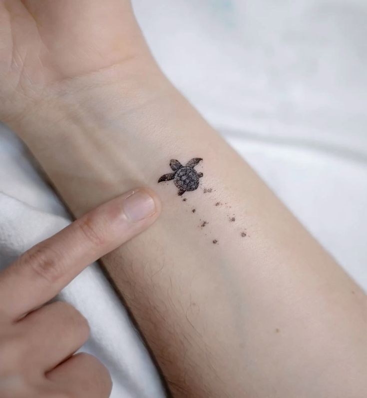 This design works best on the inner wrist or lower arm, where the trail has room to breathe and the tattoo can keep its tiny storytelling effect. It is perfect for anyone drawn to meaningful, unique Designs, especially if the turtle represents patience, resilience, travel, or personal growth. Fine-line tattoos like this do best when kept clean and not overcrowded, and this layout gets that exactly right. It also suits people who prefer meaningful ink over purely decorative Flash. If you want something tiny, emotional, and quietly symbolic, this is the kind of tattoo that stays special long after the trend cycle moves on.