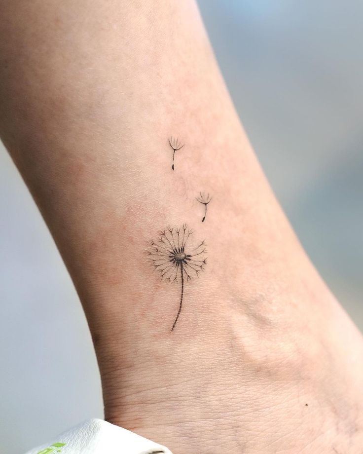 A dandelion tattoo this small feels airy and emotionally soft in the prettiest way. The drifting seeds give it movement, but the design still stays delicate and quiet, almost like a wish caught in place for just a second. It is one of those tiny tattoo ideas that never really loses its appeal because it carries both beauty and meaning without trying too hard. There is romance here, yes, but also freedom and lightness. If you are drawn to tattoos that feel gentle instead of edgy, this little dandelion has that graceful, almost weightless mood that makes a small piece feel truly special.