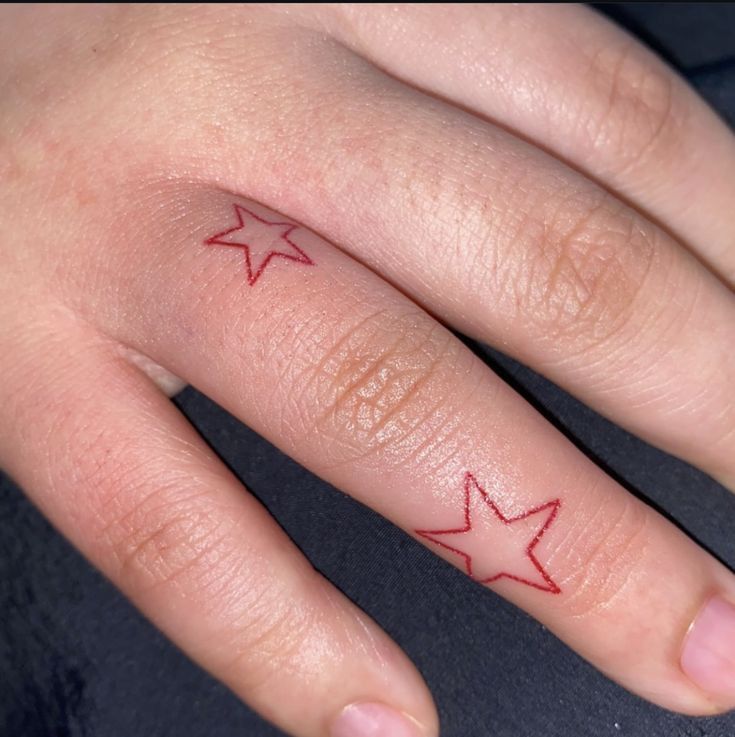 9. Matching Red Star Finger Tattoos