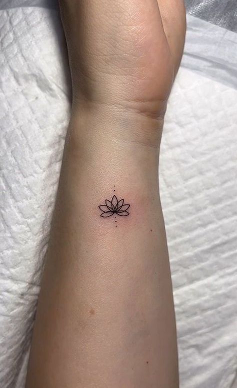 A tiny lotus tattoo always brings a sense of calm with it, and this one feels especially clean and balanced. The petal lines are delicate, but the overall shape is strong enough to read immediately, which makes the design feel elegant rather than fragile. There is a reason lotus tattoos keep returning in tiny tattoo ideas roundups: they hold so much. Meaning while still looking visually soft and refined. Growth, resilience, spiritual grounding, beauty after difficulty—it can all live inside a symbol this small. This version feels thoughtful and modern, like a quiet daily reminder rather than a dramatic statement.