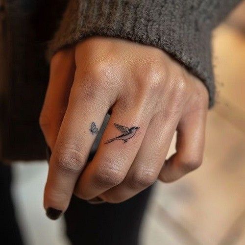 This tiny tattoo has such a thoughtful, cinematic feel to it. One bird resting, one bird lifting off, and suddenly a very small design starts to feel like a whole little story. It can read as independence, change, memory, growth, or simply the beauty of motion, which is why it falls so naturally into the category of tiny tattoo ideas with meaning. The simplicity is what makes it elegant. Nothing is overworked, nothing feels heavy, and yet it says so much. If you like tattoos that feel quiet but emotionally intelligent, this one has that rare kind of stillness that lingers.