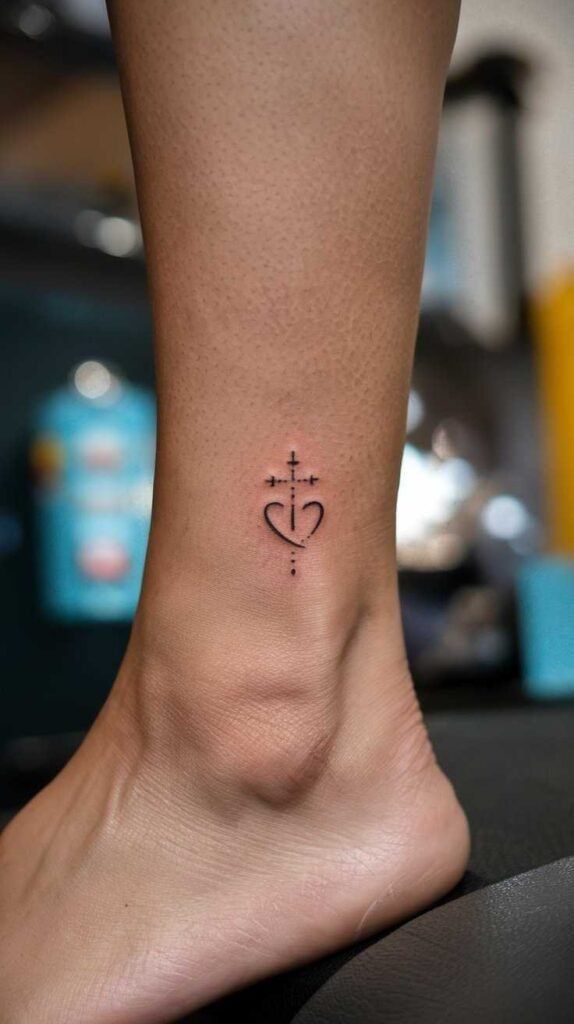 This kind of design is especially lovely for women who want something meaningful without committing to a larger religious tattoo, though it can absolutely suit men too when kept clean and minimal. The ankle Placement is smart because it keeps the tattoo personal and easy to reveal when you want to. In 2025, more people are choosing small symbolic ink over oversized statement pieces, and this fits that shift beautifully. It also works well if you want a tattoo that feels elegant with dresses, sandals, or everyday basics. If you are looking for simple ideas with Meaning and real emotional payoff, this one is a beautiful direction.