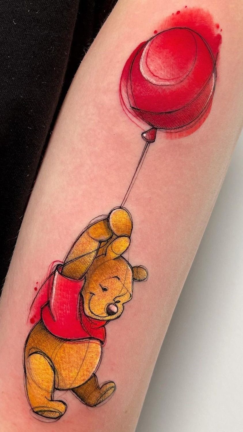 3. Flying Red Balloon Winnie the Pooh Tattoo