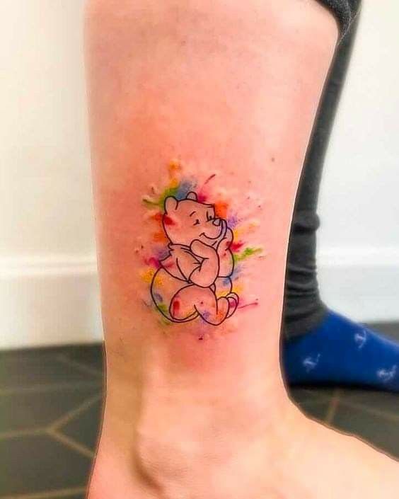 27. Rainbow Splash Winnie the Pooh Ankle Tattoo