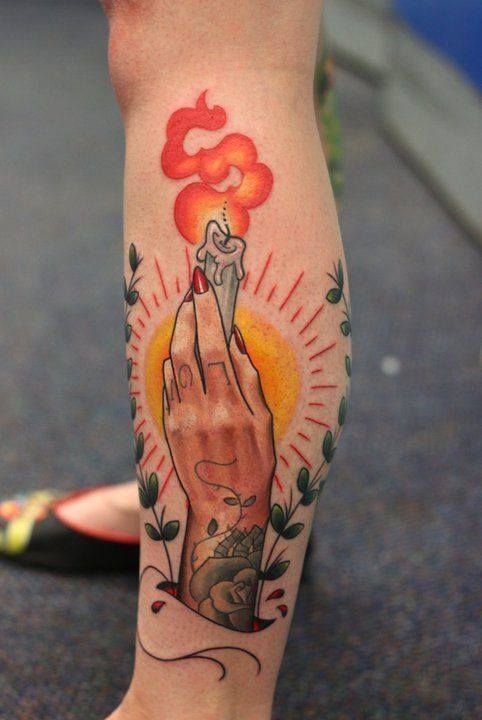 Perfect for lovers of colorful, unconventional design, this piece stands out without needing extra elements. The strong shading keeps it grounded, while the unique palette makes it memorable. It’s ideal if you want a candle tattoo that feels artistic, modern, and unapologetically different.
