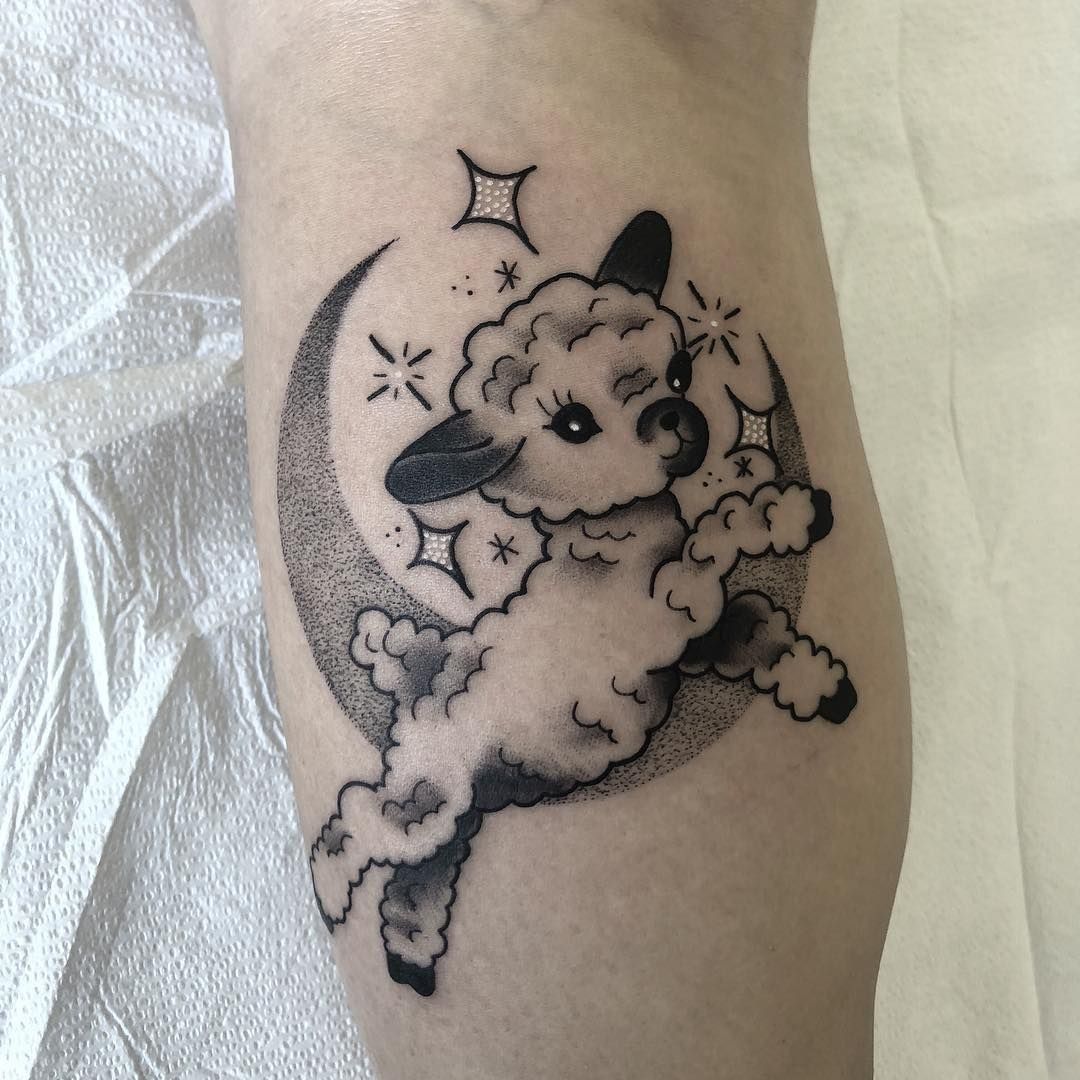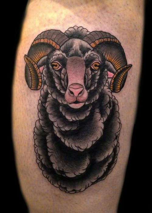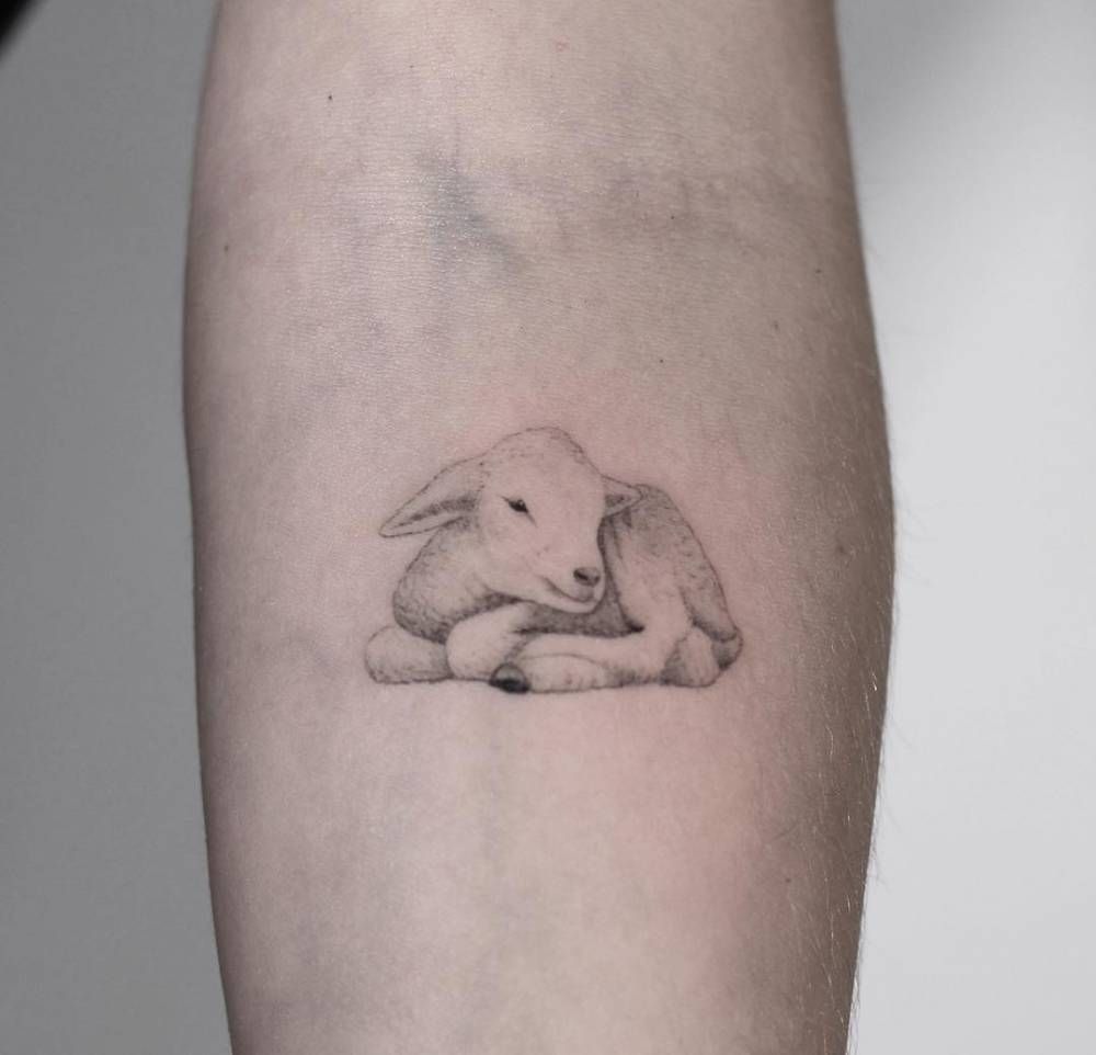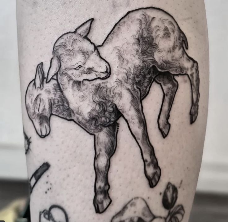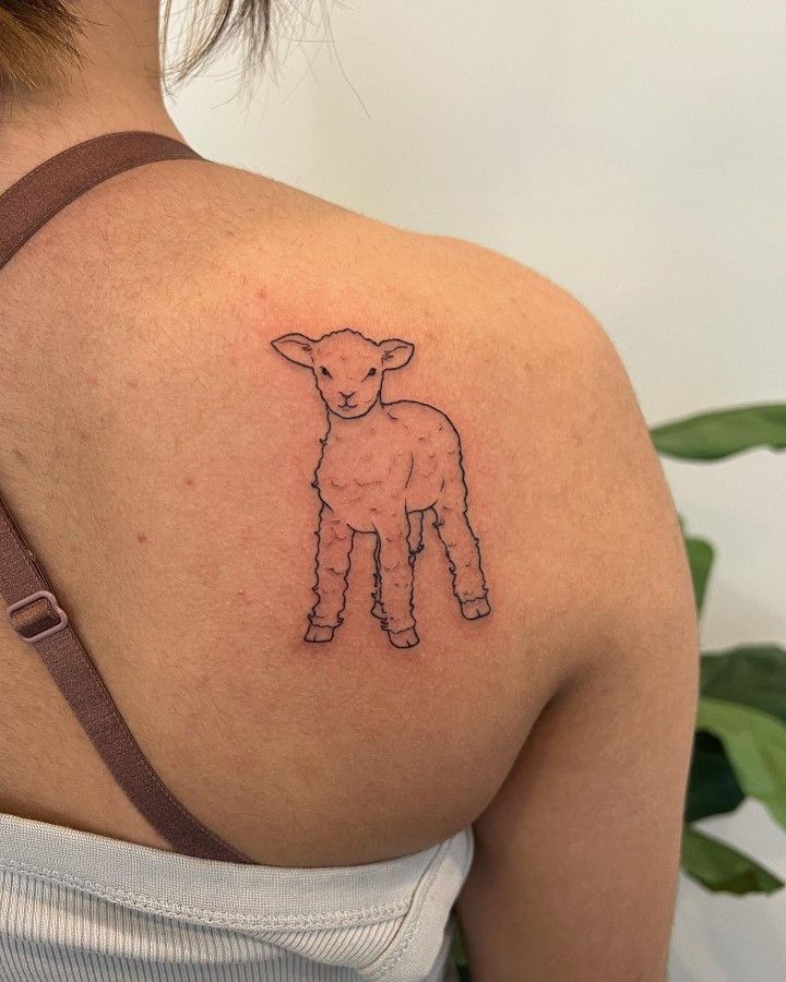 This black and traditional-inspired design is ideal for men or anyone wanting a stronger visual impact. The depth and shading make it stand out on larger placements like the calf or upper arm. If you want a lamb-related tattoo that leans more into strength than softness, this is a striking direction to explore.
