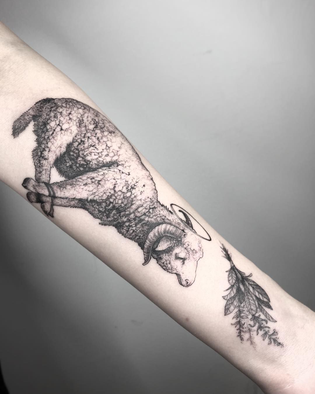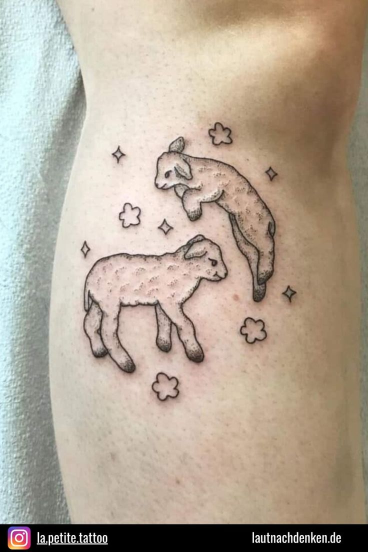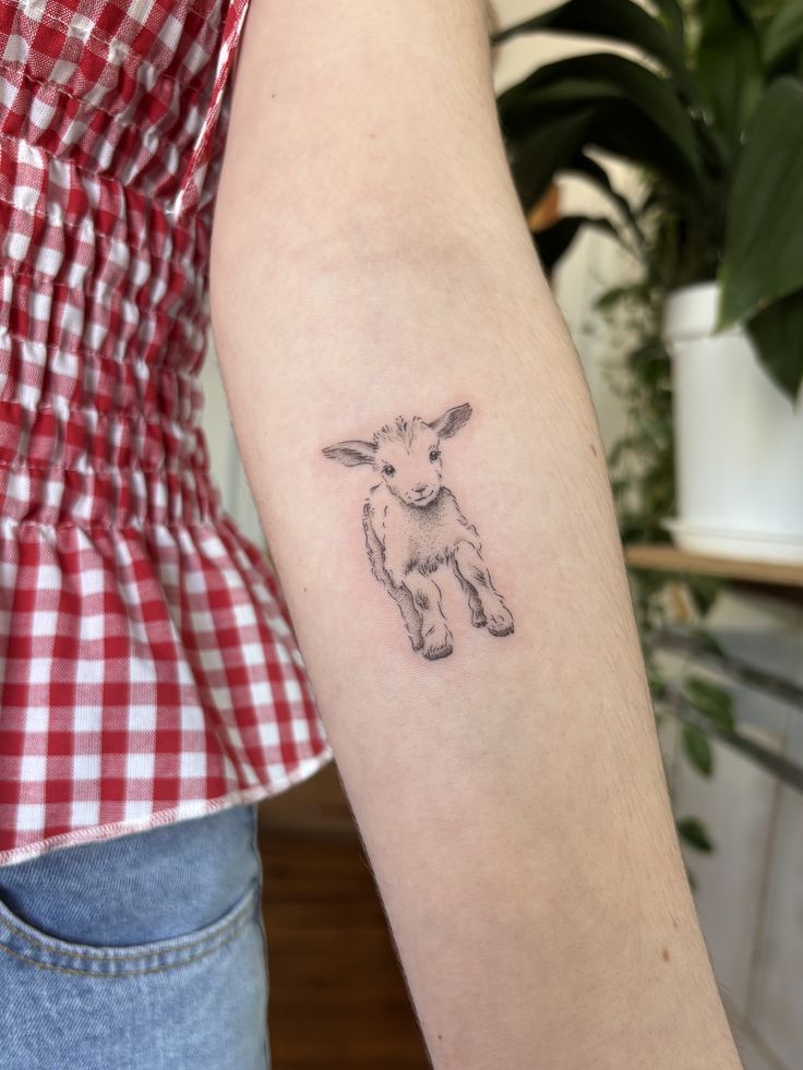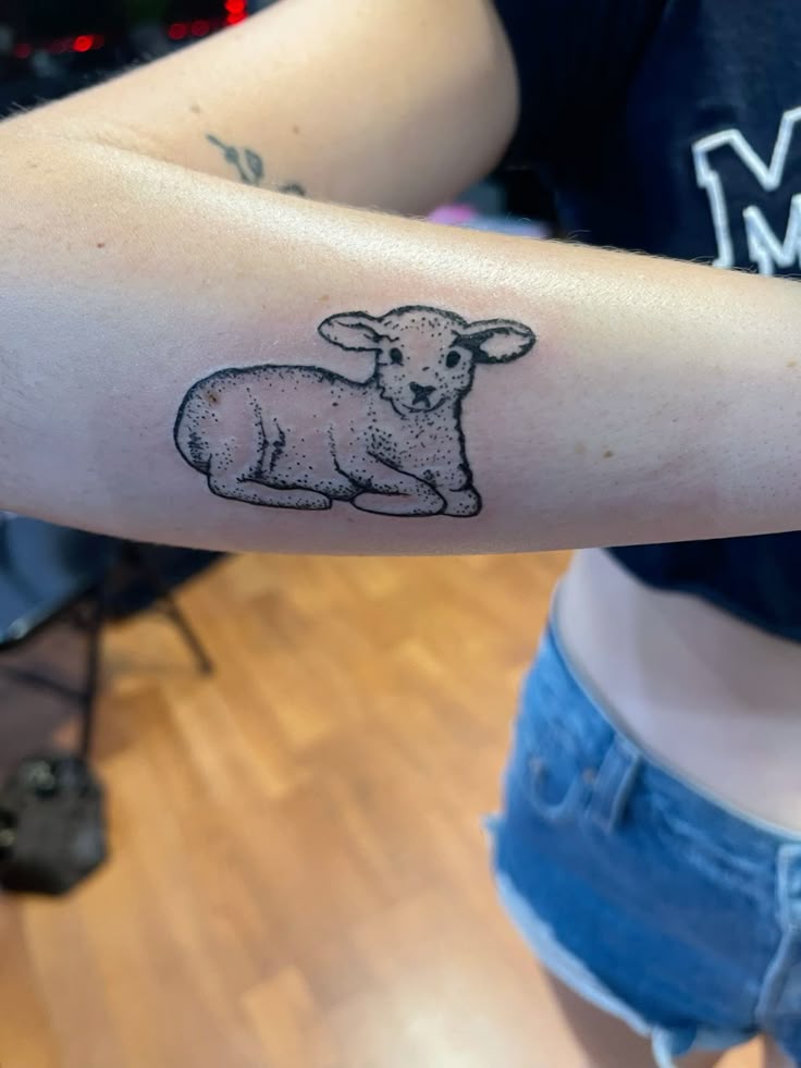 This black and traditional-inspired design is ideal for men or anyone wanting a stronger visual impact. The depth and shading make it stand out on larger placements like the calf or upper arm. If you want a lamb-related tattoo that leans more into strength than softness, this is a striking direction to explore.